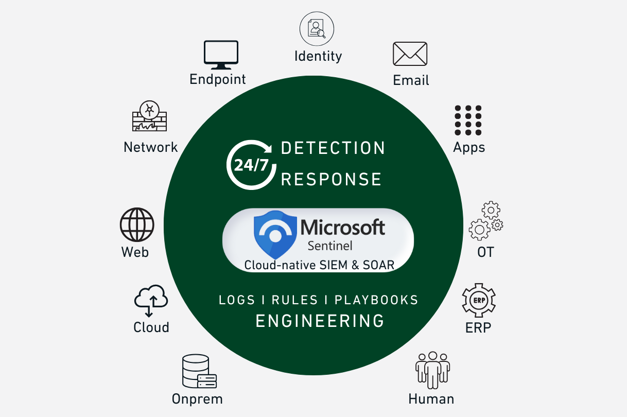 Full lifecycle management of Microsoft Sentinel, from data ingestion and normalisation through to analytics rule maintenance and incident closure