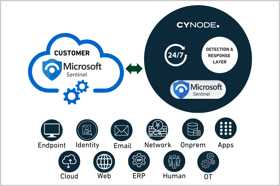 Cynode operates Microsoft-native security operations across endpoint, identity, email/Microsoft 365, cloud, and cloud apps, working in Defender XDR and Sentinel as the system of record.
