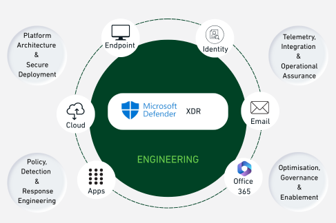 Engineering for Microsoft Defender XDR is an annual service that designs, deploys, operates, and continuously optimises Microsoft Defender XDR across endpoint, identity, email, and cloud workloads.